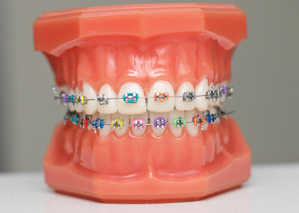เป็นการใชเ้ครื่องมือจัดฟันโลหะติดบนผิวฟันซึ่งลวดจัดฟันจะถูกรัดอยู่ในแบร็คเก็ตจัดฟันด้วยยางโอริงสีสันสดใสต่างๆ