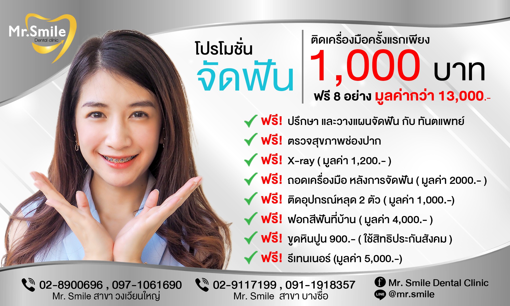 -ทำจากวัสดุบางใสแทบจะมองไม่เห็นจึงเหมาะกับผู้ที่ต้องการมีรอยยิ้มสวยใส ไร ้เหล็กจัดฟัน